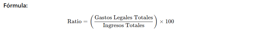 Una de las métricas más útiles para responder esta pregunta es el Ratio de Gastos Legales / Ingresos Totales.